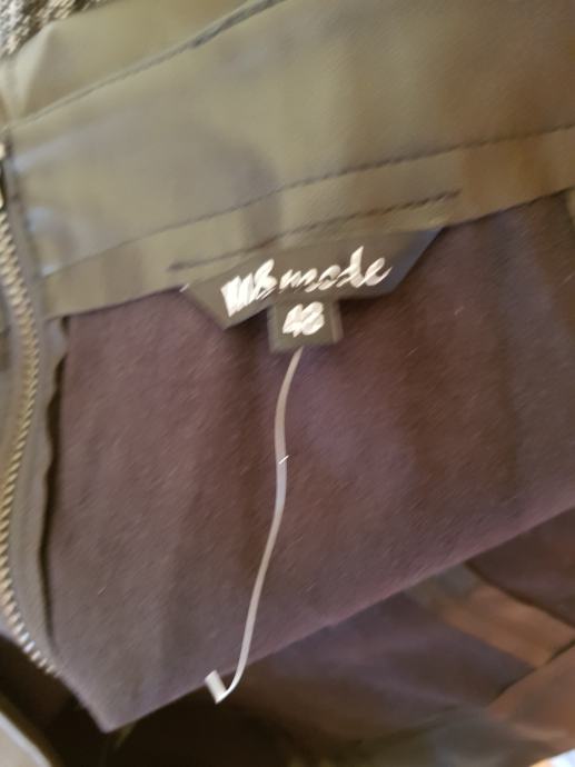 Nikoli nošeno, ni podloženo, delno raztegljivo, zapenja se zadaj z zadrgo
