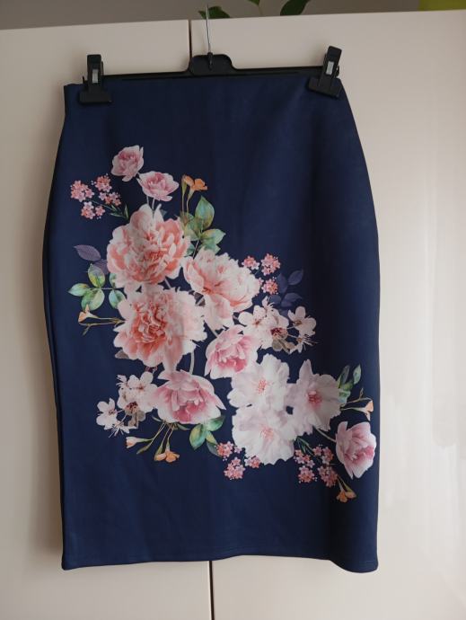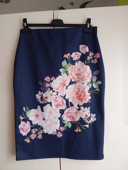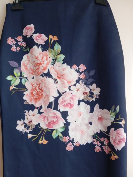 Novo, ni podloženo, raztegljivo, v pasu ima elastiko in meri 40 do cca 45cm, dolžina je 66cm, boki so 52 do cca 55cm, ne menjam, ptt ni vključena v ceno