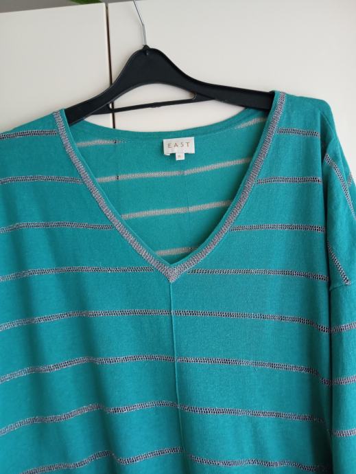 lepo ohranjen, s srebrnimi črtami, lan in bombaž, raztegljiv, od ene pazduhe do druge meri 73 do cca 80cm, dolžina je 75cm, ne menjam, ptt ni vključena v ceno