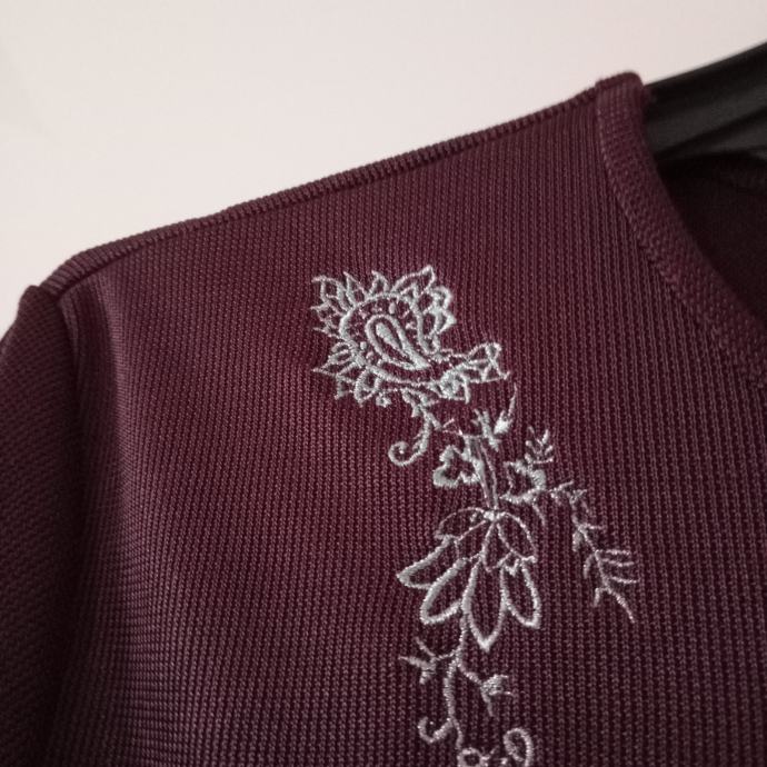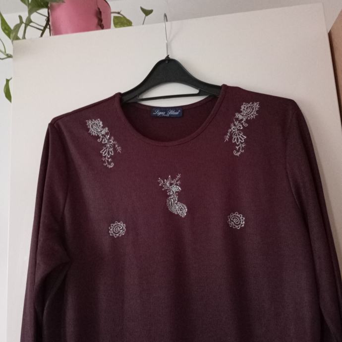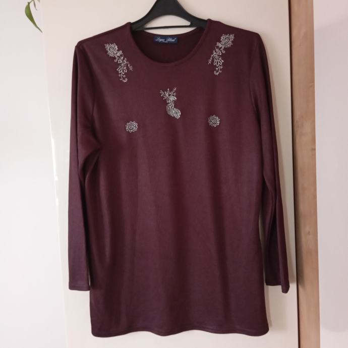 Izredno lepo ohranjena, svečana, vinsko rdeča s srebrno vezenino, raztegljiva, od ene pazduhe do druge meri 55 do cca 60cm, dolžina je 74cm, ne menjam, ptt ni vključena v ceno