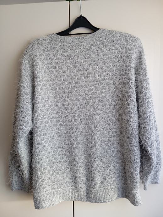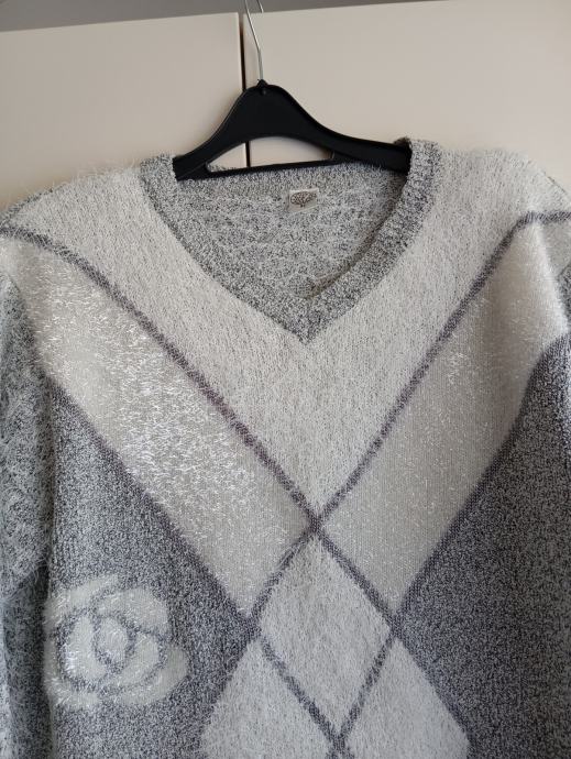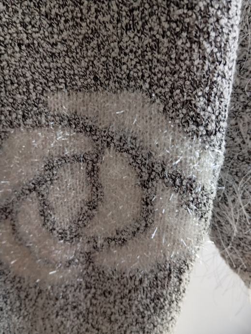 Izredno lepo ohranjen, višjega cenovnega razreda, na sprednji strani ima vpletene srebrne nitke, rahlo kosmaten, raztegljiv, od ene pazduhe do druge meri 60cm, dolžina je 70cm, ne menjam, ptt ni vključena v ceno