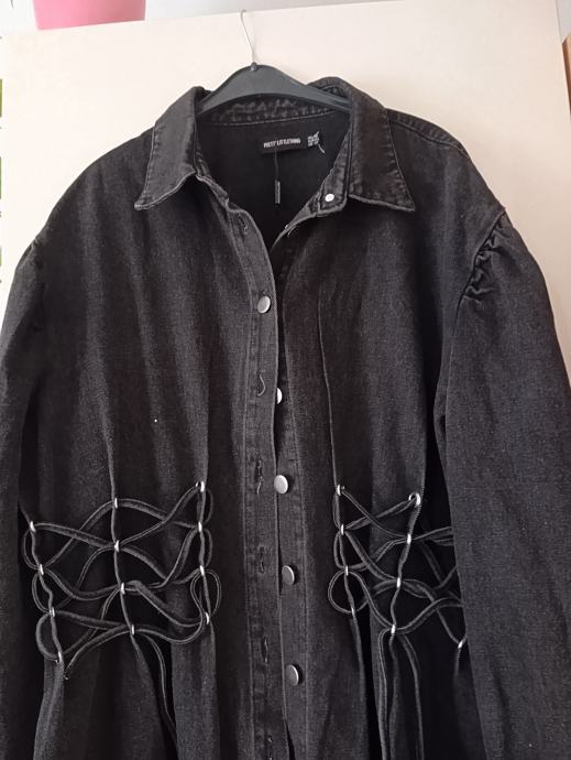 NoV z oznakami, bombažen, ni podložen, ni raztegljiva, od ene pazduhe do druge meri 60cm, dolžina je 85cm, ne menjam, ptt ni vključena v ceno