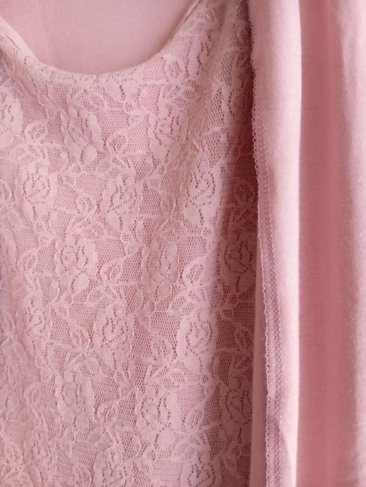 Zelo lepo ohranjena, raztegljiva, čipkasta, videz 2 v 1, viskozna, od ene pazduhe do druge meri 60cm, dolžina je 70cm, spredaj je 4cm, daljša kot zadaj. Ne menjam, ptt ni vključena v ceno