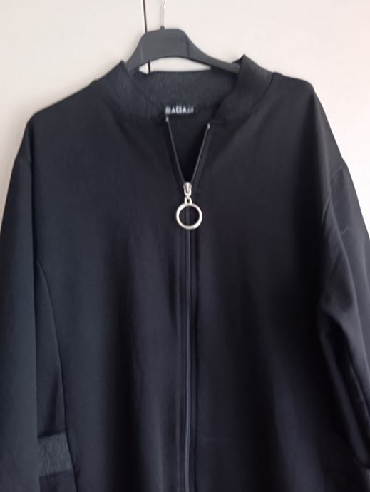 Zelo lepo ohranjena 70% bombaža, kvalitetna, ni podložena, delno raztegljiva, vratnik in rob žepov je rahlo svetleč, od ene pazduhe do druge meri 60cm, dolžina je 75cm, ne menjam, ptt ni vključena v ceno