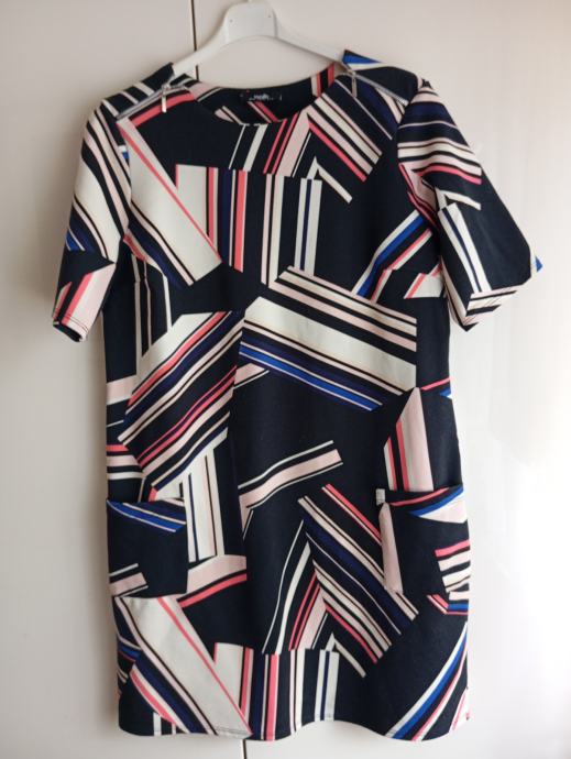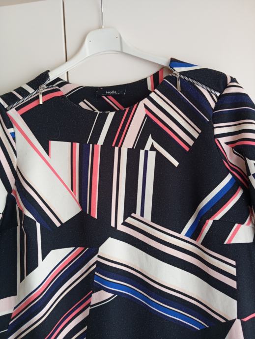 Lepo ohranjena, zelo kompaktna, ni podložena, delno raztegljiva, na sprednji strani ima 2 žepa, obleka je zamlo zmuckana, od ene pazduhe do druge meri 54cm, dolžina je 88cm, ne menjam, ptt ni vključena v ceno
