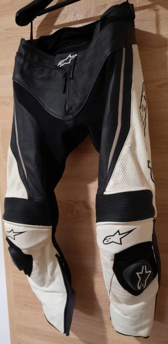 Prodam skoraj nerabljene Alpinestars Track usnjene hlače velikosti št. 54, belo/črne barve. Hlače imajo v pasu ozko zadrgo za zapenjanje izbranih usnjenih ali tekstilnih jaken. Na hlačah ni sledi poškodb.