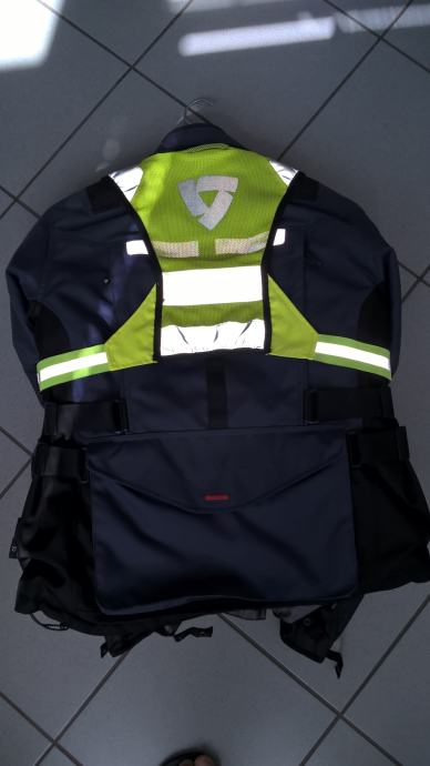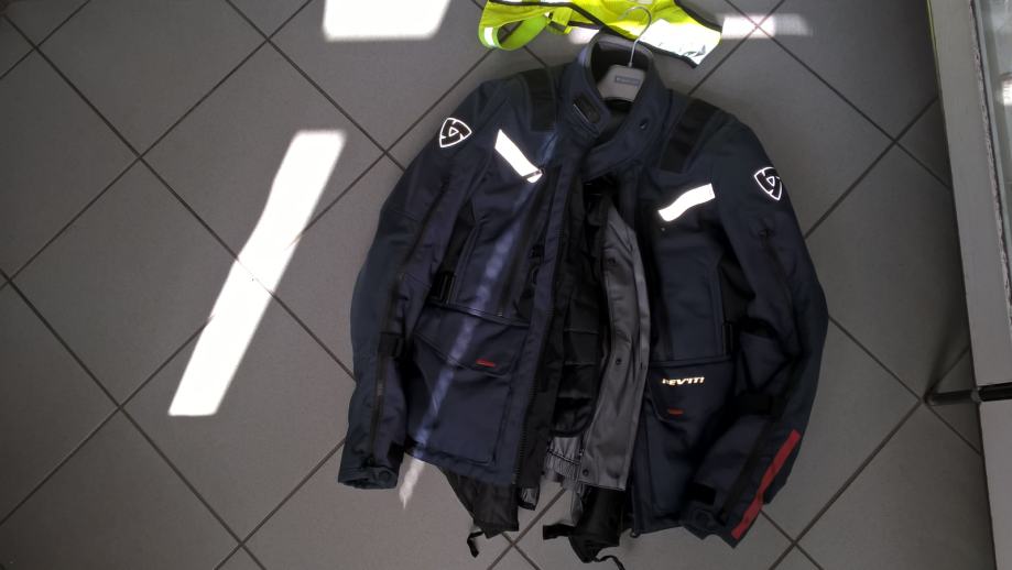 Motoristična jakna Revit Sand 3 blue, velikosti M in tehnični odsevni telovnik Revit Sand, ki se lahko sname ali pričvrsti. Prodam celoletno motoristično jakno 3v1 s ščitniki za ramena in komolce. Možna je še vgradnja hrbtnega/prsnega ščitnika in sistema hlajenja. Ima termo podlogo in dežno podlogo, drugače je cela jakna vodoodporna z žepi vred. Zadaj je velik priročen žep. Ima tudi veliko zračnikov in nastavitvenih paščkov. Možnost tudi namestitve vratne zaščite. Zelo priročen je tudi snemljiv neo-rumen odsevni telovnik, ki je minimalističen, vendar zelo učinkovit. Jakna je velikosti M in je brez sledov uporabe, cena 260,00 €. GSM 031 777 901