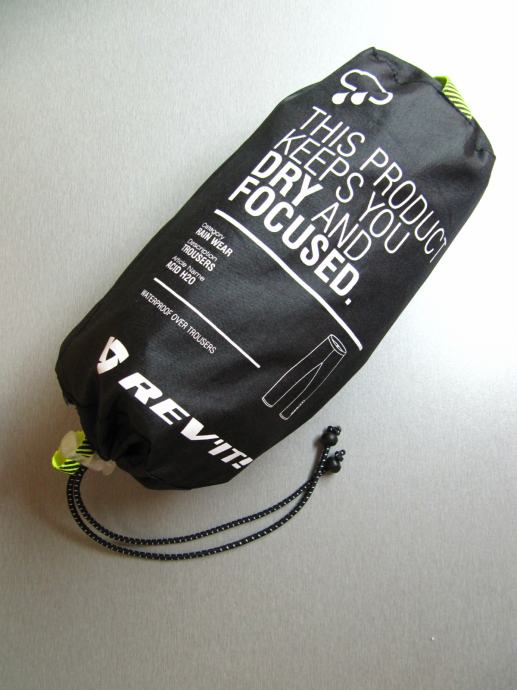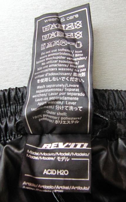 Nepremočljiva oprema za dež: dežne hlače priznane znamke REV'IT!, model Acid 3 H2O. Enostavno oblačenje. Za telesno višino cca 165-170 cm.