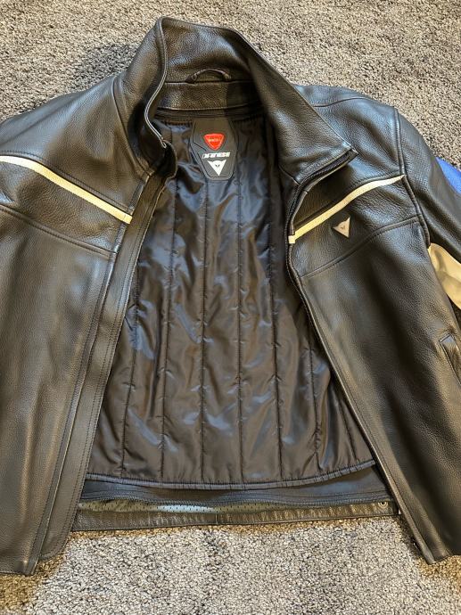 Prodam usnejno motoristicno jakno dainese, stevilka 54. Jakna je bila uporabljena le 3-4 krat, tako da je kot nova. Ima vgrajeno zascito za ramena in komolce in notranjo zimsko podlogo, ki je odstranljiva.