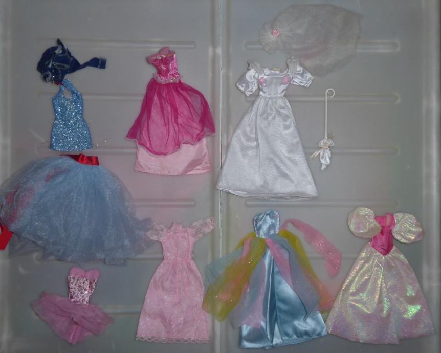 Večinoma so original Barbie oblačila in večinoma iz prejšnjega stoletja, lahko pa so tudi druga, npr. Stefi, Hasbro. Vse ustrezajo barbikam.