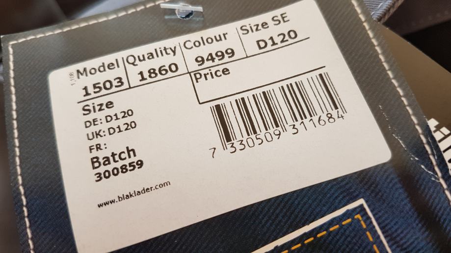 Prodam nove dolge delovne hlače Blaklader, model 1500 v sivo črni kombinaciji. Velikost je 120 (http://webfiles.blaklader.com/uk/pdf/productinfo/Stl%20UK.pdf).