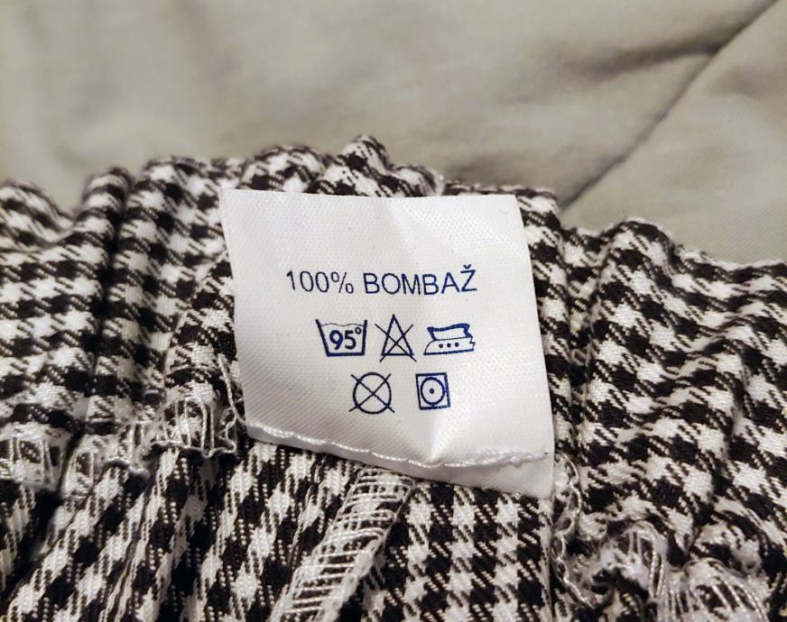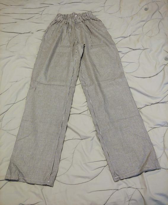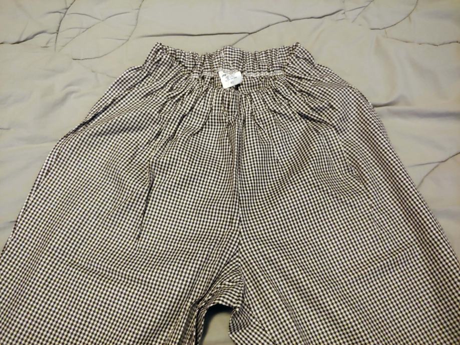 Na elastiko v pasu, brez žepov, belo - črn karo vzorec.
