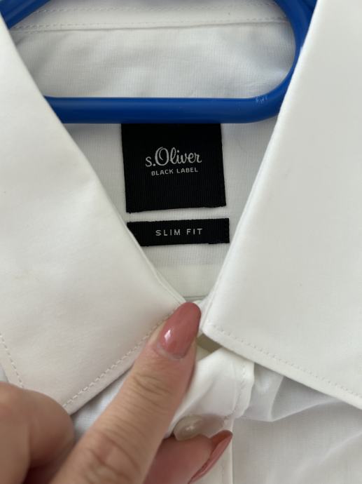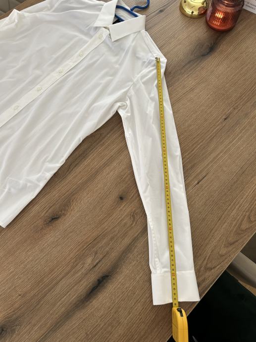 Srajca je bele barve, model slim fit, moška številka 38, primerna za S/M številko.