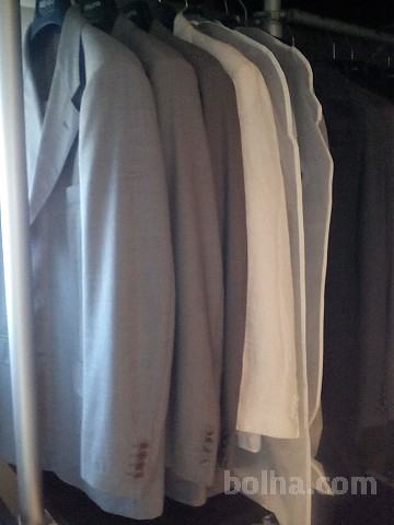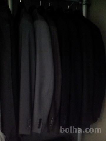 Prodam več moških Mura oblek (dve italijanske znamke UomoEbole) št. 54. Različne barve: temnomodra, siva, temnosiva, črna, rjava. Obleke so kot nove, nošene nekajkrat. Kemično očiščene. 10 kompletov. Za višino okoli 183 cm in težo 85 kg.