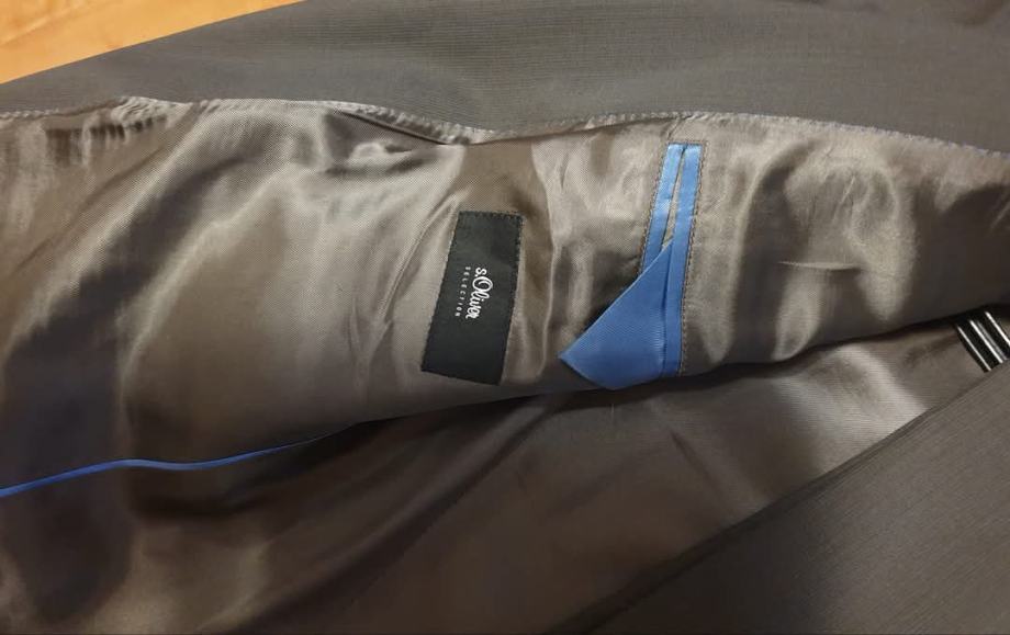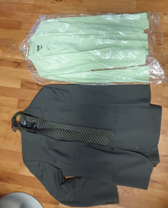 obleka S OLIVER, premium selection, rjava z zelenimi/turkiznimi črtami, + srajca, + kravata...za samo pol cene: 149,99 eur