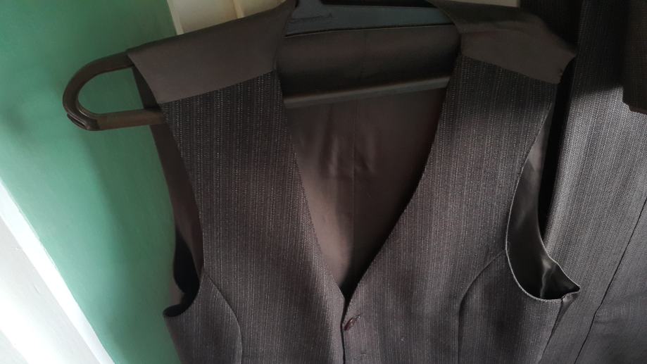 Prodam temno rjavo moško obleko M (50 velikosti) komplet suknjiča, telovnika in hlač od Modne Konfekcije Rio Rijeka. Bila je last Očeta, ki jo pa ne nosi več. Drugače je vse lepo ohranjeno, nič strgano, oprano, na njej so še vsi prvotni gumbi. Staro sigurno kakšnih 40 let. Bo že komu prav (prišla). Prodaja se pa brez obešalnika, a če je želja, ga lahko zraven tudi eventuelno podarim.