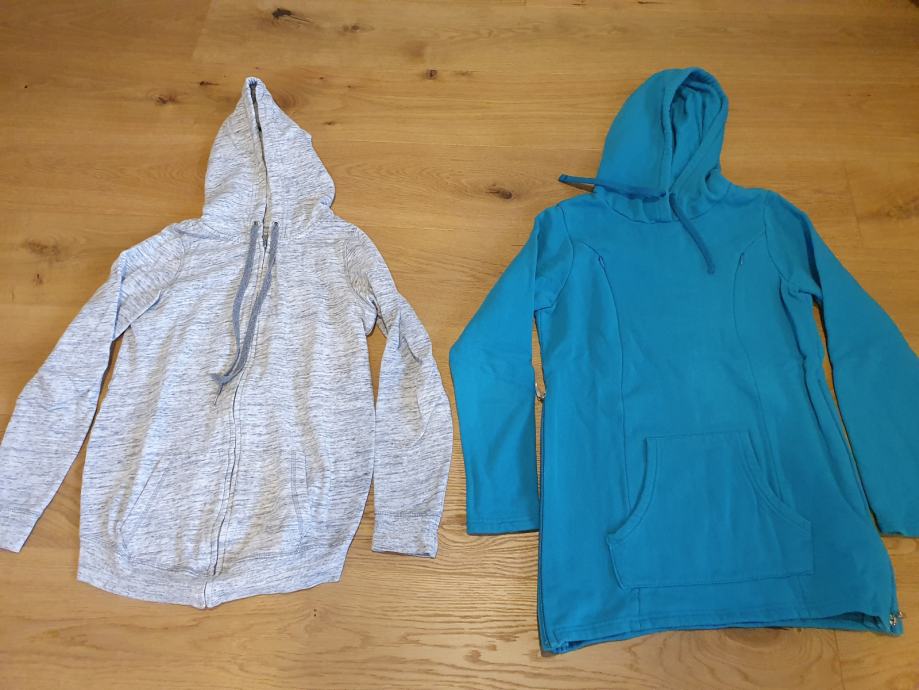 - turkizen pulover purpless za nosečnost/dojenje (zadrge ob strani za trebuh, pri prsnem kosu), XS-S (nov je stal 50€, praktično nerabljen).