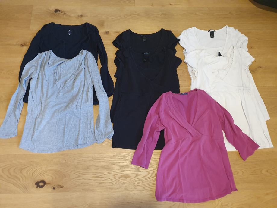 Zraven po želji podarim rabljene majice za dojenje, HM S (2x bela, 2x črna), roza 3/4 rokavi, in dve majici z dolgimi rokavi z gumbki (za spat).