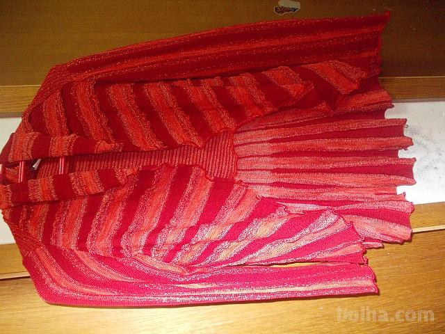 Nov svečan bolero z oranzno rdečimi progami. Kvalitetna pletenina, ki se lepo prilega. cena 50ev-ptt vsteta.
