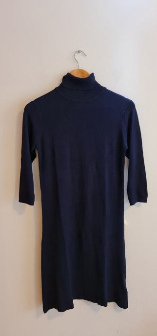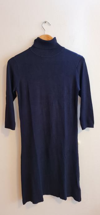 Elasticna jesensko/zimska modra obleka z ovratnikom. Primerna ta M in L. Brezhibna.