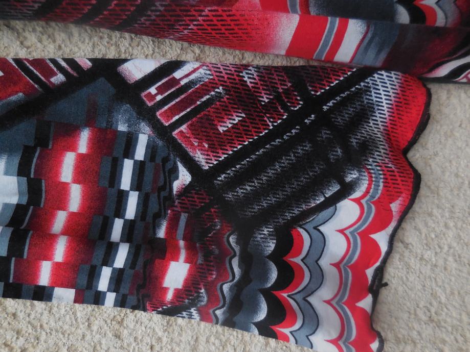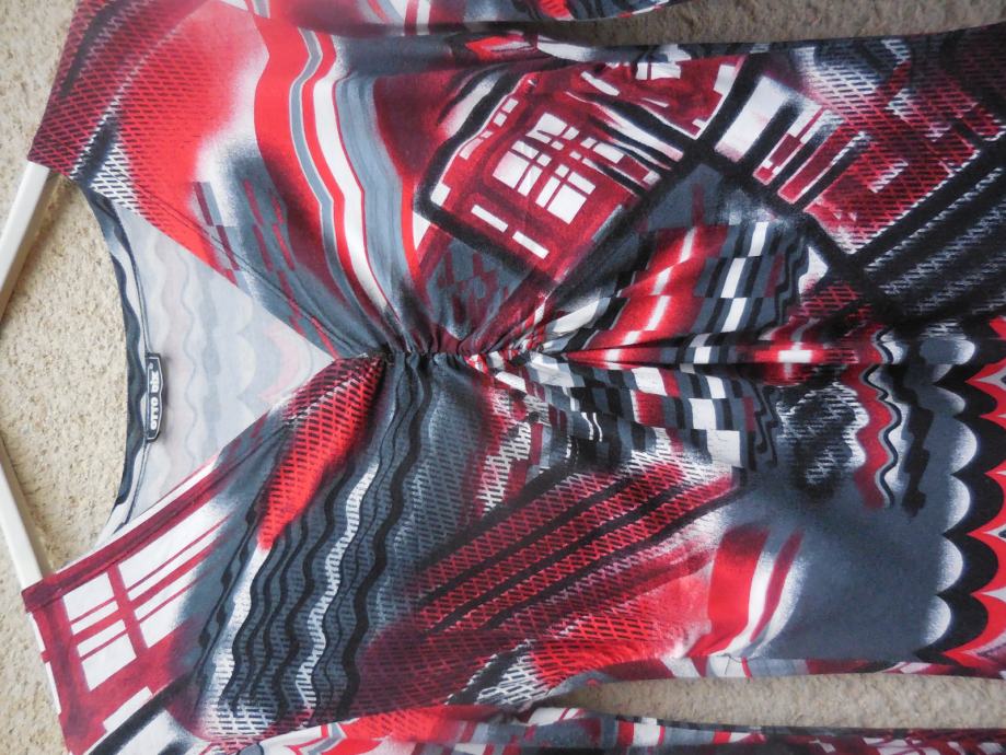 Zelo lepo ohranjena, ni podložena, je raztegljiva, ima zvončaste rokave, dolžina je do kolen, 90% viskoze.