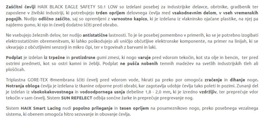 Zaščitni čevlji Haix Black eagle Safety 50.1 low, novi. Celoten opis v priloženi sliki.