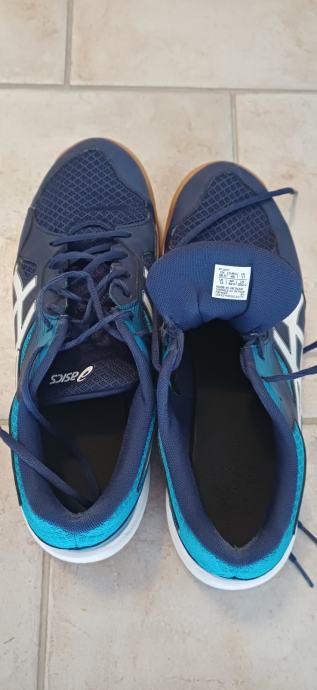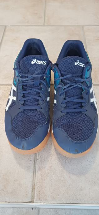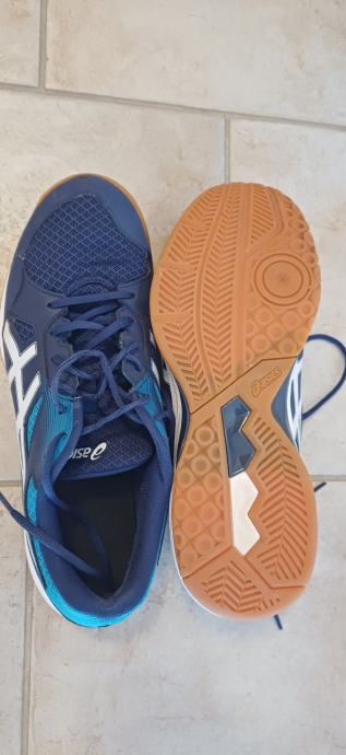 Prodajam rabljene modre dvoranske copate znamke Asics velikosti 45, primerne za različne notranje športne aktivnosti. Copati so izdelani iz kombinacije gume in sintetičnih materialov, kar zagotavlja udobje in oprijem med uporabo. Podplat je gumijast z dobrim oprijemom, primeren za dvoranske površine. Prodajam zaradi ne uporabe. Rabljene dve sezoni po 6 mesecev. Badbinton.