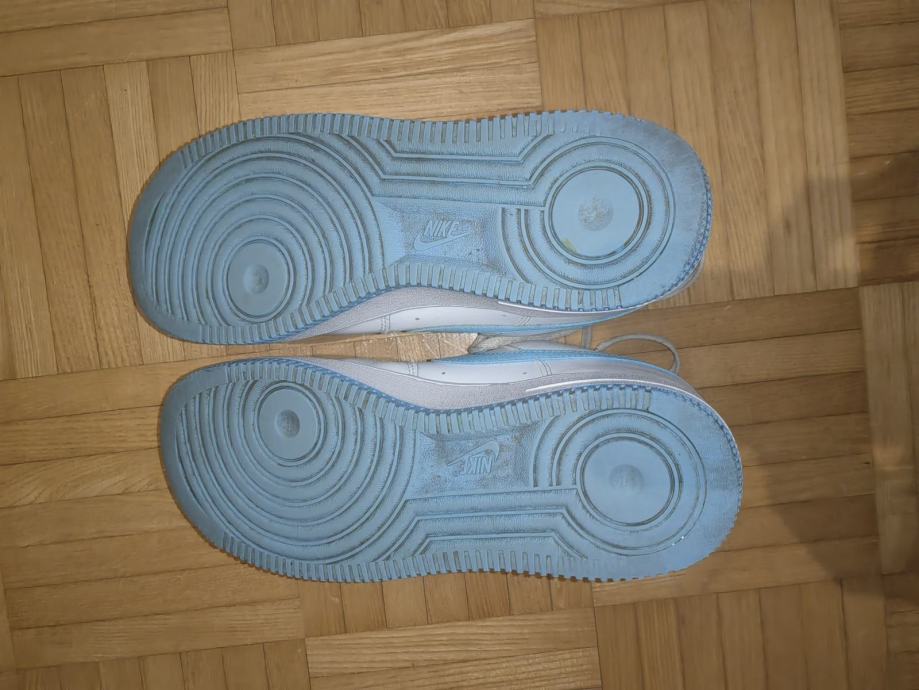 Prodam lepo ohranjene čevlje znamke Nike Air Force1, belo-modre barve. Številka čevlja je 40, so skoraj novi. V notranjosti ima znake uporabe (zadnja slika) - niso moteči pri uporabi. Osebni prevzem možen v Črnomlju ali Novem mestu. Zraven tudi priložim original škatlo.