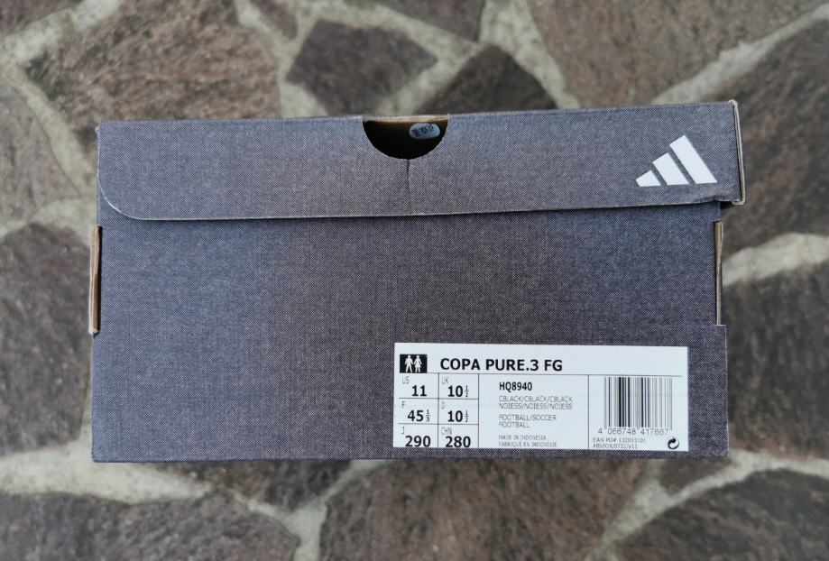 Prodam povsem nove in nikoli uporabljene moške pohodniško-nogometne čevlje Adidas Copa Pure.3 FG, velikosti 45 1/3. Prevzem mogoč v NM, LJ & MB ter na vmesnih lokacijah, drugače pa poštnino krije kupec.