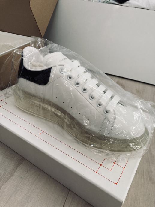 Prodam bele superge, znamke McQueen. Bele superge iz usnja s prozornim prevelikim podplatom in peto iz črnega usnja. Ima velike ravne vezalke in je zaključena s podpisom Alexander McQueen na jezičku in peti. Supergam je priložen dodaten komplet vezalk.