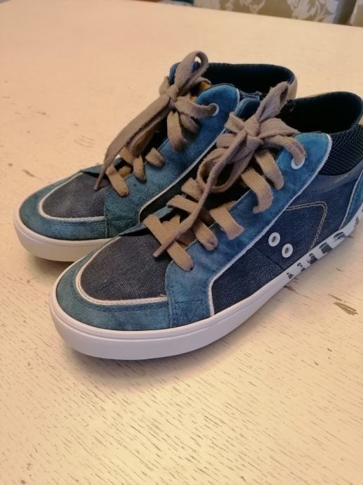 Prodam komaj kaj nošene, zelo lepo ohranjene fantovske platnene superge znamke Geox. So temno modre v kombinaciji svetlejše modre barve z rjavimi vezalkami. Ob notranji strani imajo tudi zadrgo, za lažje obuvanje. Št 37