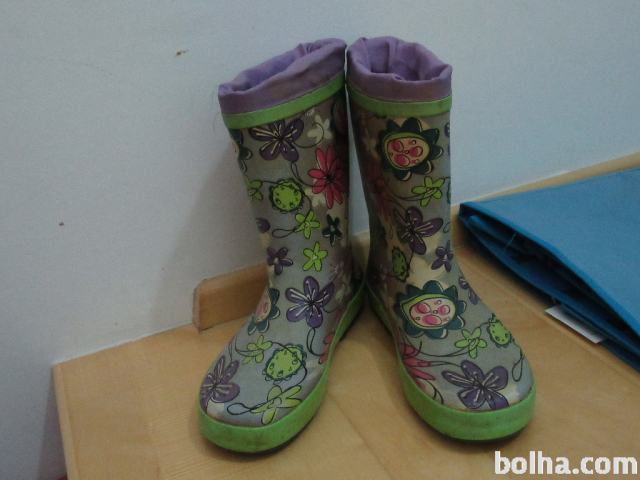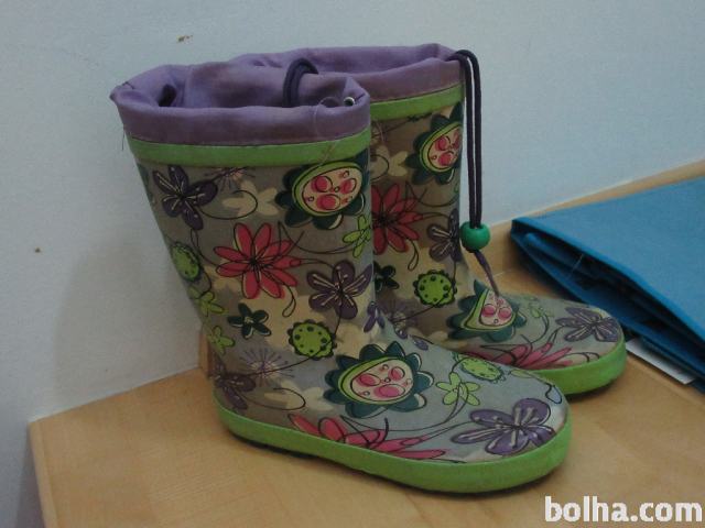 > dekliški gumijasti dežni škornji 32, zeleni z rožicami, malo nošeni - 8 eur