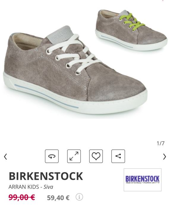 Minimalno rabljene otroške nizke superge Birkenstock ARRAN št. 30. Redna cena novih je 100 eur.