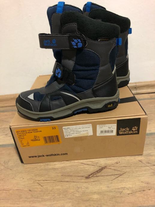 Prodam fantovske zimske cevlje vel. 33. Cevlji so dobro ohranjeni in zelo topli. Blagovna znamka Jack Wolfskin.