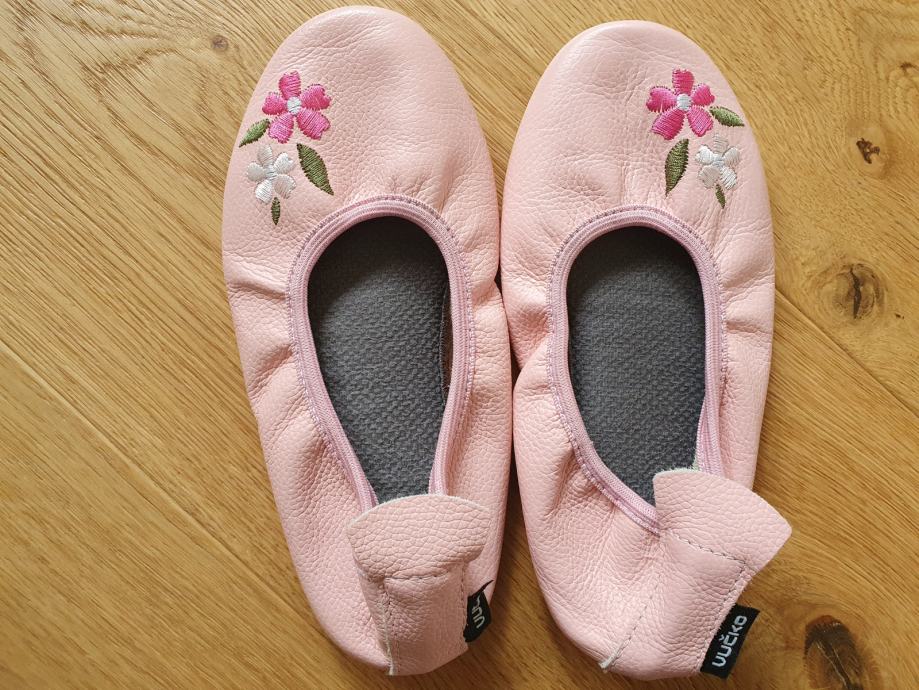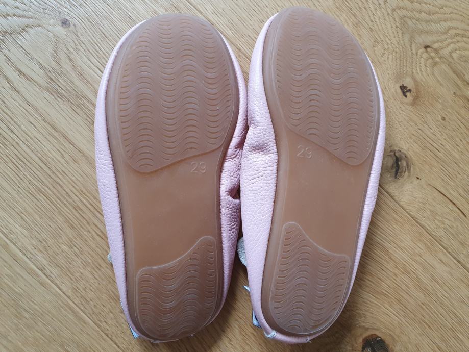 Roza Vučko Peka usnjeni copati s podplatom iz gume, nedrseči, kot novi, velikost 29.