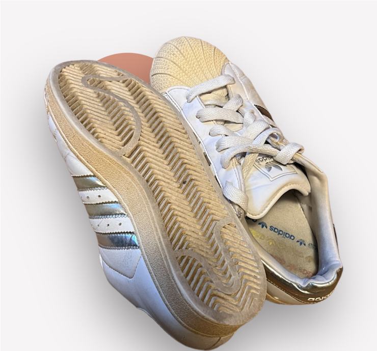 Skoraj nove. Cisto malo obrabljene. Podplat kot nov. crte ob steani silver barve odlicne. Zelo udobne.