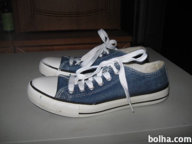 Prodam veliko nošene a še vedno dobro ohranjene platnene superge v barvi modrega jeansa. Notranja mera je 24cm.