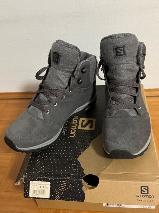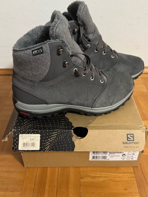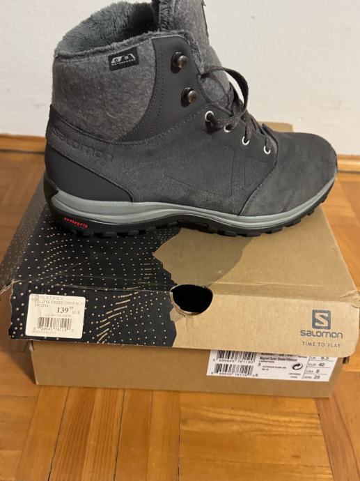 Prodam kakovostne ženske zimske čevlje znamke Salomon v velikosti 40, sive barve. Čevlji so kot novi, uporabljeni samo 1x, z udobno podlogo za tople noge v hladnih dneh. Idealni za zimske sprehode in vsakodnevno uporabo v hladnejšem vremenu.