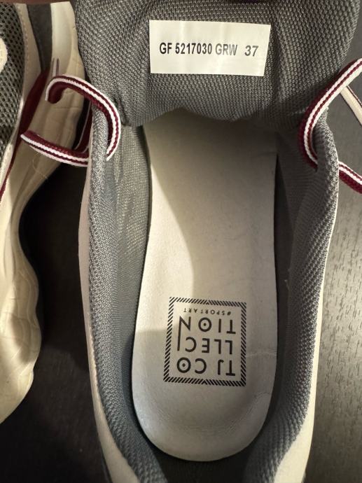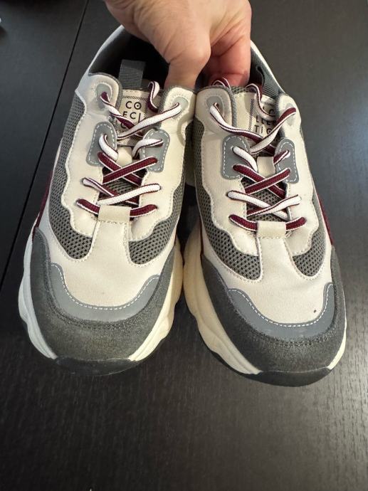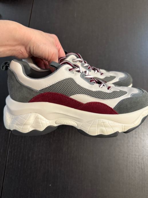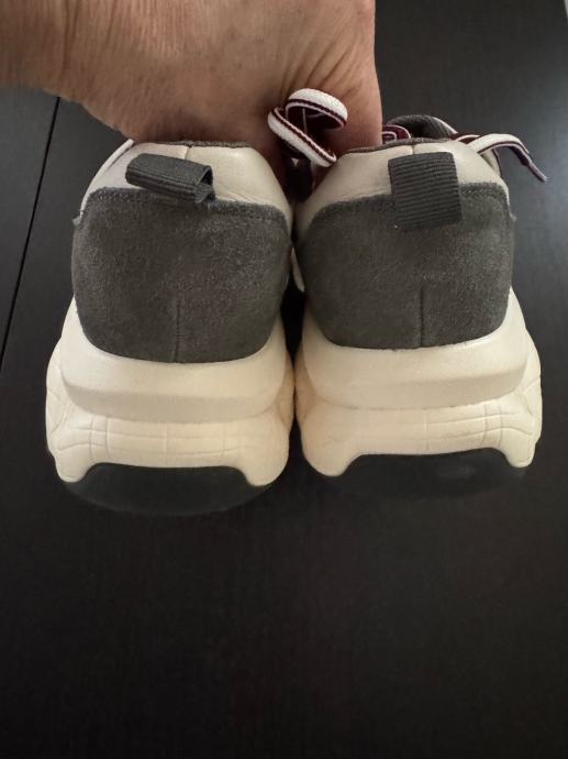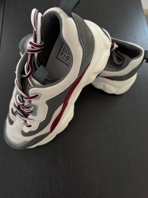 Prodajam ženske usnjene superge velikosti 37 v sivo-beli barvi z rdečimi detajli. Superge so rabljene, vendar še vedno v dobrem stanju z modernim športnim dizajnom. Primerne so za vsakodnevno nošenje in se odlično prilegajo nogi. Usnjen vložek..