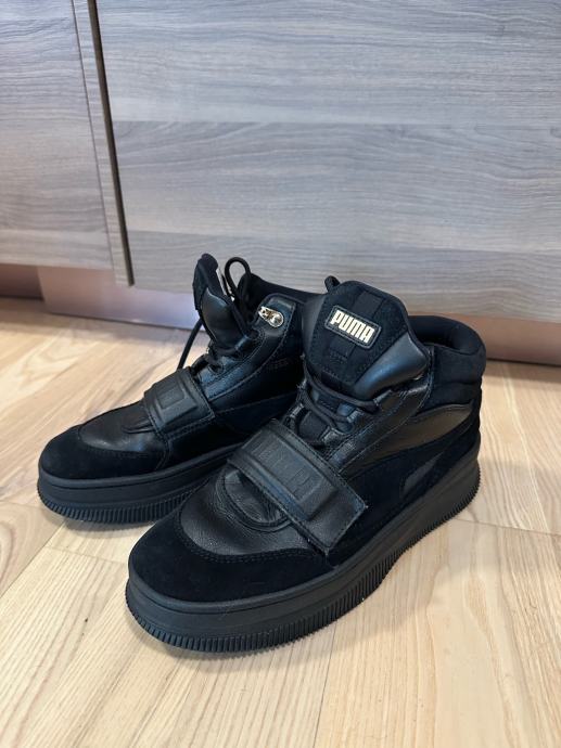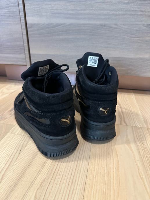 Prodajam rabljene ženske zimske superge Puma, velikosti 40, v črni barvi. Superge so izdelane iz kombinacije naravnega usnja in semiša, idealne za zimski čas. Udobna obutev za prosti čas z značilnim Puma logotipom, ki doda modni pridih vašemu zimsksemu stilu.