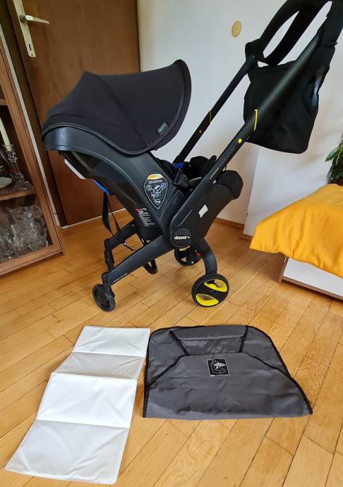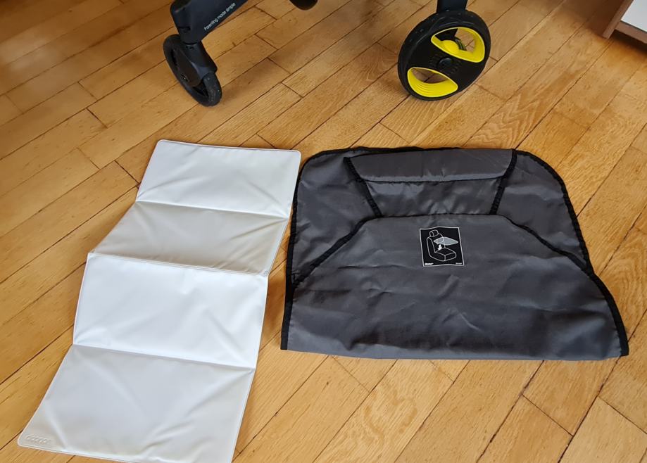 Zraven damo originalno previjalno torbo znamke DOONA, zaščito za avtosedež ter plastično previjalno podlogo