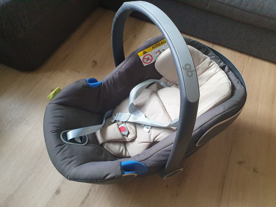 Jajčka priznane znamke GB je odlično ohranjena, praktično brez znakov uporabe. Ima senčnik, prilagodljivo oporo za vrat dojenčka, dodaten vložek, skratka vse kar spada zraven.