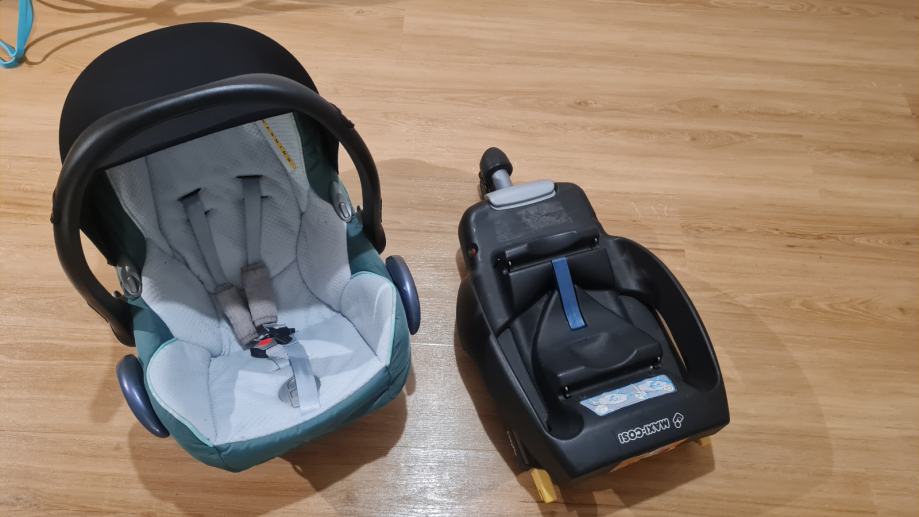 Ugodno prodamo lupinico za dojenčke 0-13 kg, Maxi Cosi z bazo Isofix (priklop v sedež) in EasyFix (dodatna noga, ki poveča stabilnost).