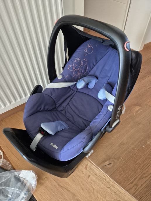 Prodamo bazo za Maxi cosi Pebble, lupino dodamo gratis. Vse v dobrem stanju, ni bilo udeleženo v nesreči. Edino tkanina na lupini je malce razparana na robovih (kot vidno s slike). Zraven še zimska prevleka za lupino.