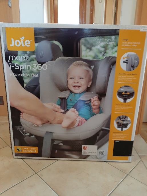 Prodam odlično ohranjen avtosedež Joie® Avtosedež i-size 40-105 cm i-Spin 360 črne barve z vsemi dodatki. Uporablja se lahko od rojstva dalje do približno 4. leta. Prevleka je oprana. Nikoli udeležen v nesreči.