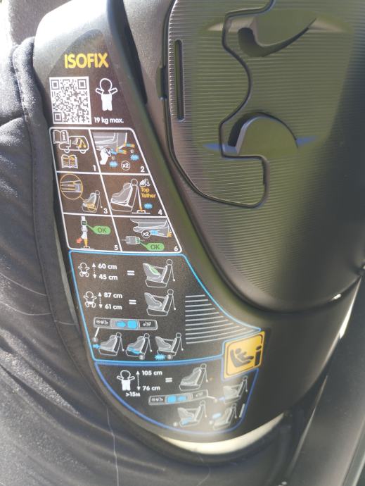 V avto se pritrdi z iso-fixom ter dodatnim pasom (top tether).