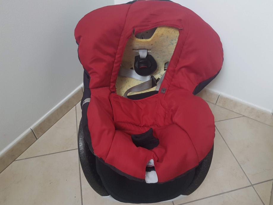 Sedež je očiščen in prevleka oprana. Uporabljali smo ga samo za prevoz otroka iz vrtca.