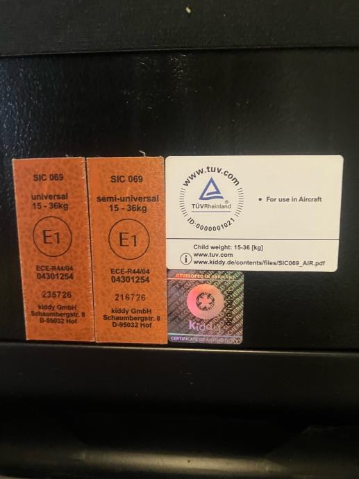 Otroski avtosedez znamke Kiddy, primeren za otroke tezke od 15 do 36 kg (enostavna nastavljivost). Sistem pritrjevanja: Isofix