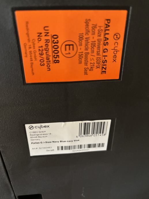 Prodamo otroški avtosedež Cybex Pallas G i-Size. Primeren od 15 meseca starosti pa do 12 leta.