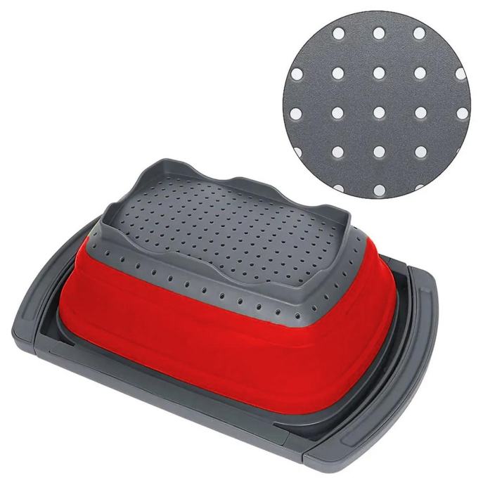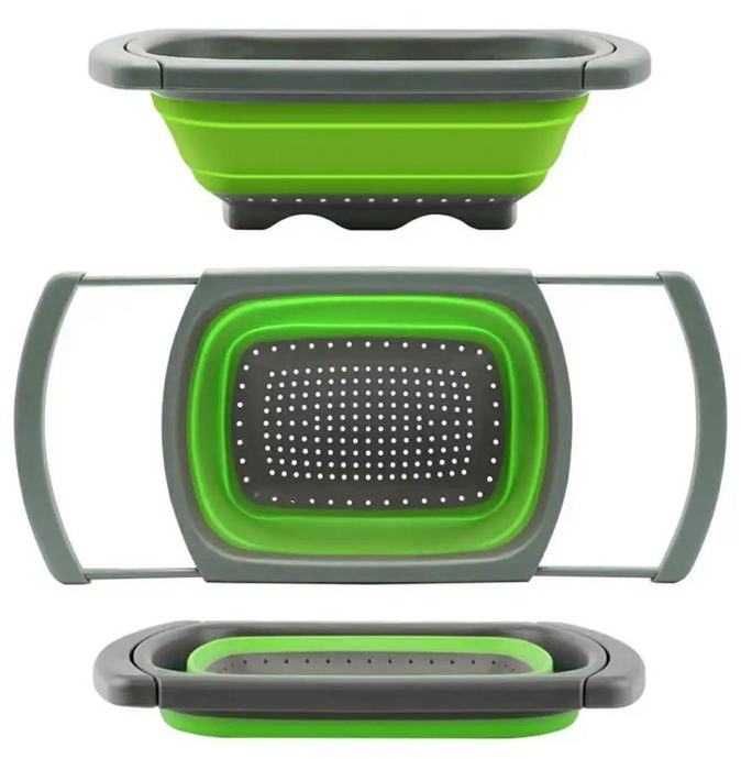 Silikonsko zložljivo cedilo odcejalnik je popoln pripomoček za vsako kuhinjo. S svojo inovativno zasnovo in visoko kakovostnimi materiali je to cedilo, ki ga potrebujete za enostavno in učinkovito odcejanje hrane.